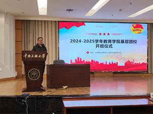 為全面貫徹落實(shí)黨的二十大精神,深入學(xué)習(xí)貫徹習(xí)近平總書記關(guān)于青年工作的重要思想,落實(shí)學(xué)校有關(guān)團(tuán)校建設(shè)要求,教育學(xué)院于11月19日,在學(xué)術(shù)交流中心潤良報(bào)告廳舉行基層團(tuán)校培訓(xùn)班開班儀式。教育學(xué)院黨委副書記鐘文勇,教育學(xué)院團(tuán)委書記艾力亞爾和全體基層團(tuán)校學(xué)員參加開班儀式。開班儀式由教育學(xué)院團(tuán)委副書記田雪主持。