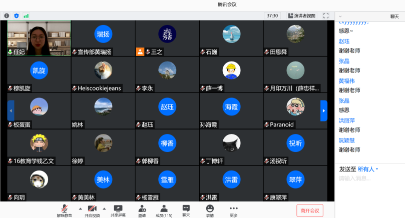 本次線上畢業典禮的主持人為教育學院田恩舜書記。田恩舜書記首先對在場全體師生的到來表示熱烈歡迎,接下來對學院領導、各系系主任、學院教師代表進行逐一介紹。他們分別是:康翠萍院長、孫冰副書記、孔凡哲副院長、洪雷副院長、羅建河副院長、薛忠祥主任、黃傳慧主任、趙冬梅主任、汪丞教授、李勇老師、姚林老師、陸瑜老師、王之老師。