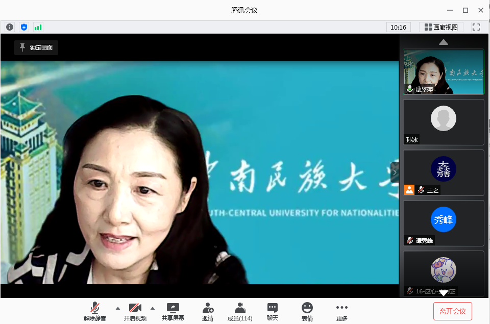 接著,教育學院康翠萍院長發表講話。康院長提出,今年的畢業典禮對于畢業生來說意義特殊。處于疫情肆虐之時,過去的幾個月經歷對于每一個人來說非常珍貴。畢業生在這段艱難時期克服困難,順利完成學業,度過疫情后即將踏上人生新征程。四年前踏入校園大門之時的畏懼、第一次進入專業課堂和科研項目時的笨拙、在某項學習任務中無知無畏犯下的錯……這些都刻在老師的腦海中,也都將載入中南民大教育學院的史冊。教學以明道,育人以達理,是教育學院的院訓,教育之志在四方,學術之理在通達,康院長希望同學們堅守教育之道,把教育之志傳遞給每一個人,做一個實實在在對社會有貢獻的人。無論同學們身處何方,教院永遠都是家。