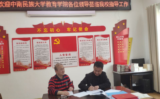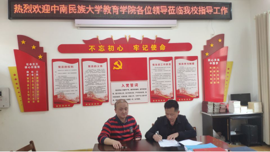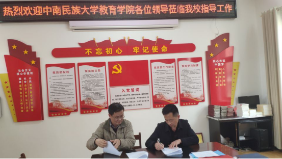 交流座談會上,雙方充分地了解彼此的現(xiàn)狀和訴求的基礎上,就共建教育實踐基地的相關事宜達成了共識,并簽訂了本科和教育碩士實踐基地協(xié)議。中南民族大學教育學院由羅建河副院長分別與毛陳鎮(zhèn)初級中學高興勝校長、毛陳鎮(zhèn)第一小學梁維學校長簽署“共建本科生教育實踐基地協(xié)議”;洪雷副院長分別與毛陳鎮(zhèn)初級中學高興勝校長、毛陳鎮(zhèn)第一小學梁維學校長簽署“共建專業(yè)學位研究生實踐基地協(xié)議”。