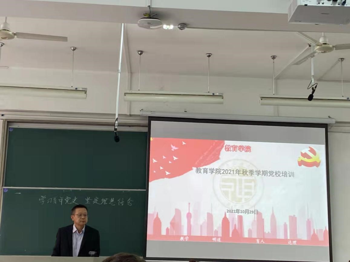為進一步加強黨性教育,提高大學生的黨史學習意識,傳承好黨的紅色基因,10月28日-29日,分批次開展了秋季學期黨校培訓的第四次黨課,黨課以“學習百年黨史,堅定理想信念”為主題,教育學院專職組織員梁漢皋老師擔任主講人。