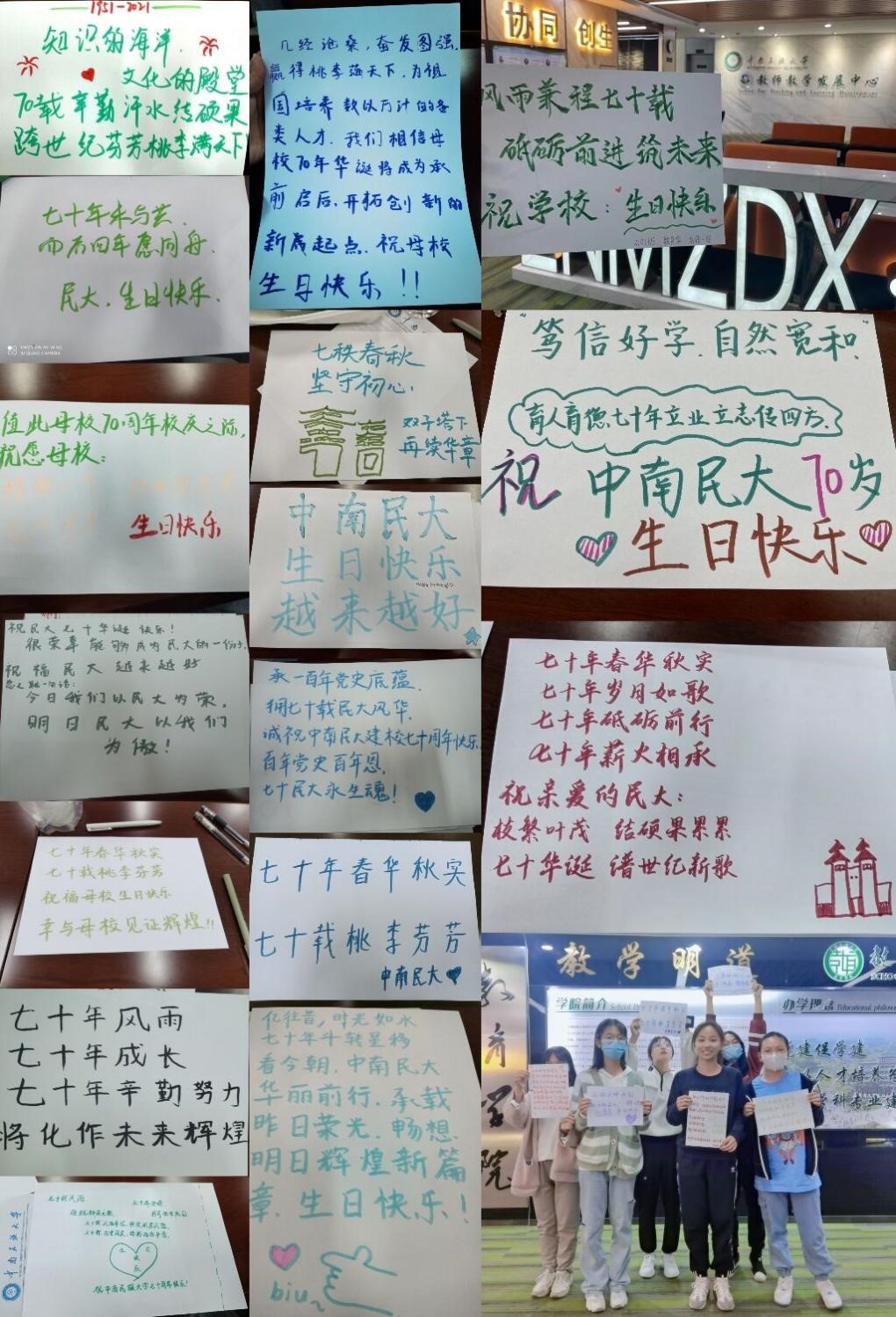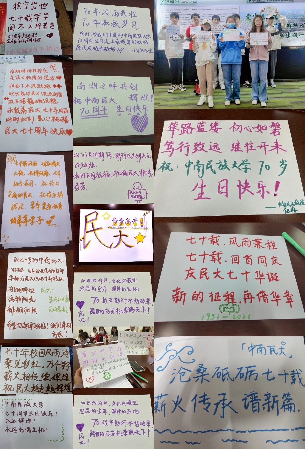 今天是中南民族大學七十年華誕。七秩弦歌勵耘,萬千桃李芬芳。新征程薪火承續,星光更璀璨;滿園學子譽神州,勵志亦明德。值此母校七十年校慶之際,祝愿宏圖更展,再譜華章!