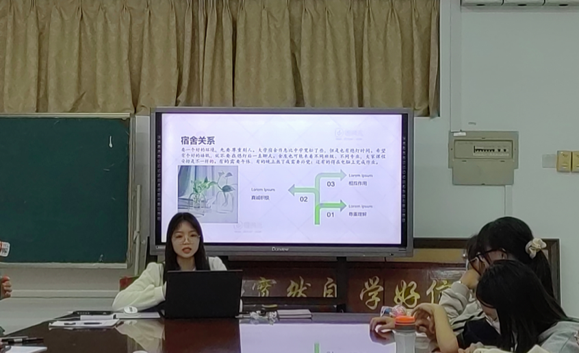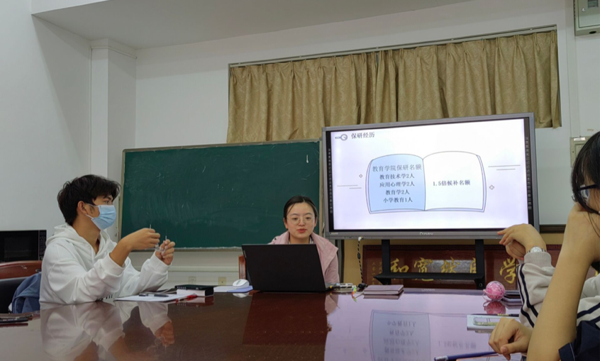 緊接著,三位優秀的學姐向新生們分享了自己的學習經驗。2018級教育技術學的王瑩,圍繞保研和參加學科競賽,講述了自己成功取得保研資格的心路歷程,并分享了在大型學科競賽中如何脫穎而出的技巧。2019級教育學專業的張婭,緊扣社會實踐活動和大學生創新創業訓練計劃項目,展示了“愛在同城攜手遠航”的項目申報書,并建議新生在找小組伙伴時,應該找與自己性格互補的人,這樣更有利于團隊分工協作。同時,項目選題要新穎,能夠抓人眼球,增加小組獲勝幾率。第三位分享者是班助陳小婕,她圍繞“大學人際交往”主題,從宿舍關系、戀愛關系、同學關系和家人關系這四個方面,為新生提出了寶貴的建議。并希望同學們在相處之中多一點包容與尊重,家人之間多感恩之心。