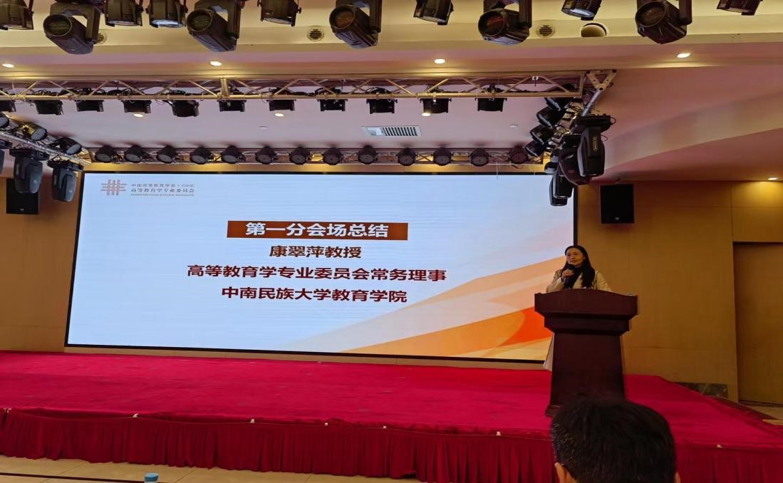 本次年會交流形式豐富多樣,不僅設有分論壇,還開辟了博士生論壇和青年學者論壇專場學術報告。我院康翠萍教授受邀做分論壇主持和大會總結,她認為高等教育普及化從表層次看是一個“量”的概念,實際上具有一個內在的深層次“質”的規定性,“質”與“量”是一對辯證統一的哲學范疇,高等教育規模增長到一定程度,必須引起系統內部的“質”的突變,本土化的特征也會凸顯出來。她以“多元”作為關鍵詞進行了概括,線上線下的多元學術交流形式讓教育在場的意蘊更廣化,宏觀微觀嵌合的多元學術視野讓理論碰撞更靈動鮮活;法、哲、教、理多元學術交流范式讓學術氣氛更生動活躍。在高質量發展背景下探究高等教育發展與改革不僅是中國特色社會主義理論的一種深刻的學術表達,更是與現實需求同頻共振的探索行動。