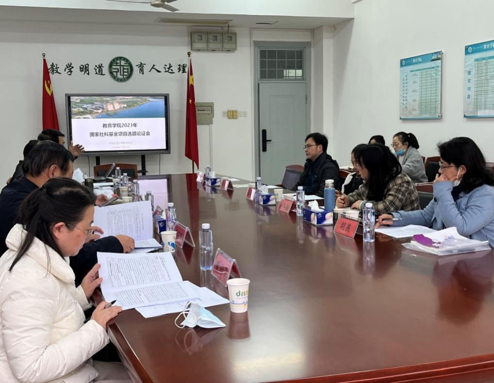 11月21日下午,教育學院于15號教學樓727會議室召開2023年國家社科基金項目選題論證會。本次論證會由孟立軍、孔凡哲、周守軍、胡炳仙、和黃傳慧組成專家組,申報教師康翠萍、喻永慶、胡燕以及鮑旭輝老師參加。論證會由孔凡哲主持。