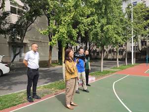 (圖為學院領導老師在了解軍訓相關情況)