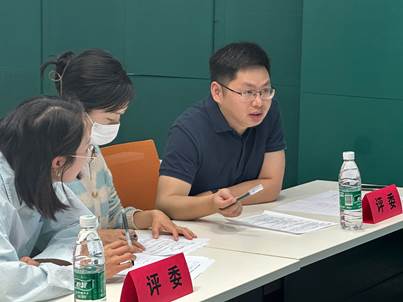 (圖為三位評委老師商議比賽結果)