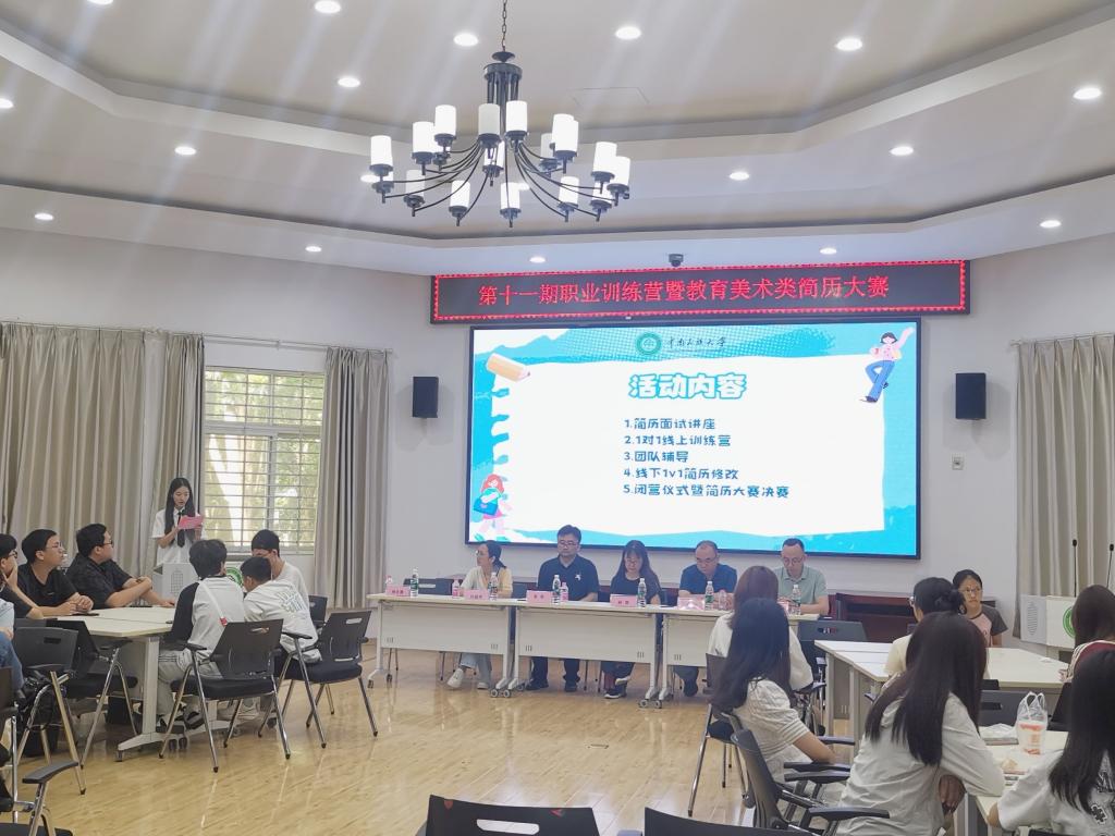 為幫助學生提升職業規劃和簡歷撰寫能力,提升就業競爭力。近期,學校舉辦第十一期職業訓練營暨教育美術類簡歷大賽,本次活動由招生就業工作處主辦,教育學院和美術學院承辦。5月25日上午在4號樓多功能廳舉辦開營儀式,學生工作部、招生就業工作處、創新創業學院、教育學院、美術學院學生工作負責人,來自各學院50名學生代表參加了開營活動。