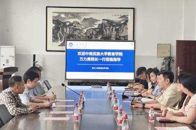 余鵬對萬力勇一行的來訪表示歡迎,對喀什大學(xué)教育科學(xué)學(xué)院的整體發(fā)展情況、學(xué)科建設(shè)情況與學(xué)院發(fā)展目標進行了簡要介紹,表達了與我院開展全面合作的意向。萬力勇介紹了中南民族大學(xué)教育學(xué)學(xué)科發(fā)展歷史和當前學(xué)科建設(shè)情況,對兩校教育學(xué)學(xué)科建設(shè)的互補性進行了分析,對雙方開展全面合作的前景進行了展望。隨后,雙方就就在學(xué)科建設(shè)與人才培養(yǎng)、科學(xué)研究與社會服務(wù)、師資隊伍建設(shè)、學(xué)生工作等領(lǐng)域開展合作的具體事宜進行了深入研討,雙方提出共建“南疆鑄牢中華民族共同體意識教育研究中心”,并簽訂院際全面合作協(xié)議。
