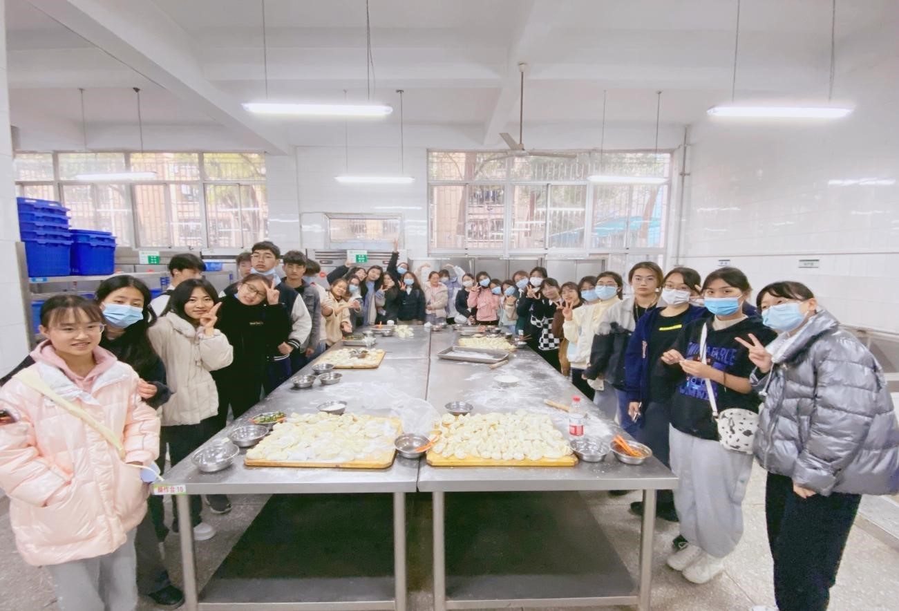 活動當天,屋外寒風襲襲,屋內卻是熱鬧非凡,暖意融融。同學們挽起袖子,和面、搟皮、攪餡、包餃子,分工明確,有條不紊。同學中,包餃子的行家不在少數,個個摩拳擦掌、大顯身手,薄薄的面皮細膩的餡在她們手中如小精靈般一旋一捏幻化出各式模樣——金元寶,小福袋,小刺猬。同學中包餃子的新手也興趣頗高,認真“求學”,在慢慢摸索中漸漸包出了模樣。這一問一教中充滿著歡聲笑語,暖意沁入人心,拉近了同學間的距離。經過同學們一小時的忙碌,包著滿滿愛意的餃子終于入鍋,經過十多分鐘的等待,伴著熱氣出鍋,飽滿誘人,香氣撲鼻。一碗餃子乘著同學們對家的思念,緩了離家的鄉愁,熱騰騰的餃子下肚,同學們的臉上都揚起了滿足的笑容。牛磊、張杰和陳瑋龍三位老師也被同學們的合作精神和班級團結奮進的強大力量所感染。