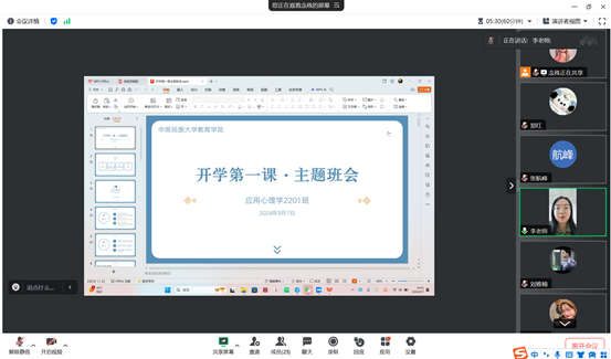 (圖為心理教育2201班班導(dǎo)師李晨召開線上班會)
