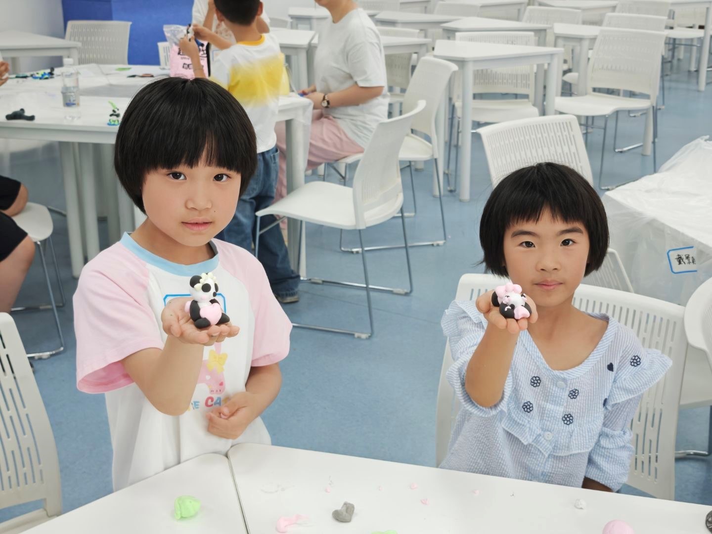 5月18日的《熊貓歷險(xiǎn)記》課程則帶領(lǐng)孩子們走進(jìn)大熊貓的奇妙世界。課堂上,主講老師詳細(xì)介紹了大熊貓的進(jìn)化過(guò)程、成長(zhǎng)階段、棲息地環(huán)境及其在生態(tài)系統(tǒng)中的關(guān)鍵作用。孩子們不僅學(xué)習(xí)了熊貓相關(guān)的知識(shí),還了解到“熊貓外交”政策所蘊(yùn)含的中國(guó)文化精神。在實(shí)踐環(huán)節(jié),孩子們參與“熊貓創(chuàng)意繪畫(huà)”和“黏土熊貓制作”活動(dòng),用畫(huà)筆和黏土展現(xiàn)了他們心中可愛(ài)的熊貓形象,進(jìn)一步加深了對(duì)熊貓的喜愛(ài)和對(duì)自然文化的熱愛(ài)。