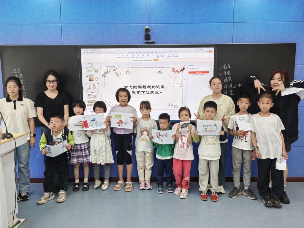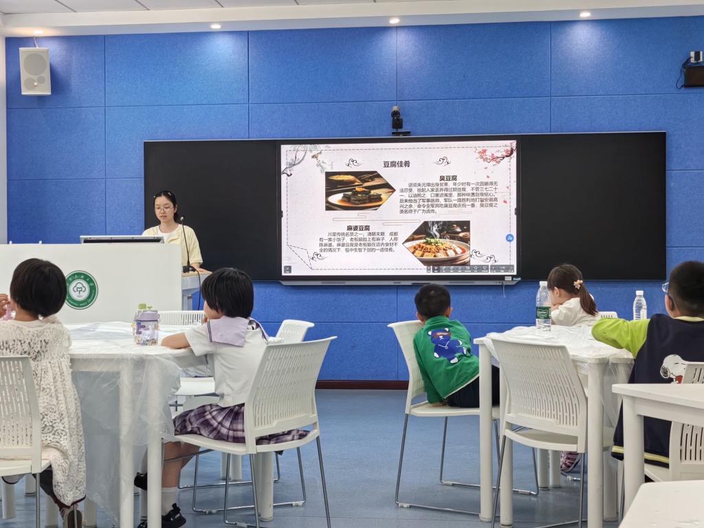 5月11日的《豆腐奇遇記》課程中,孩子們深入了解了豆腐這一傳統(tǒng)食品的歷史淵源、文化意義以及制作工藝。在動(dòng)手環(huán)節(jié),孩子們親手制作豆腐,觀察制作過(guò)程中的化學(xué)變化,親身感受古人的智慧和自然利用的奧妙。此外,課程還特別安排了“豆腐美食繪畫(huà)”活動(dòng),孩子們充分發(fā)揮想象力,用畫(huà)筆描繪出各種以豆腐為主角的美食畫(huà)面,展現(xiàn)了豐富多彩的中華美食文化。