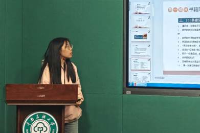 郭丁宇同學分享了蘇霍姆林斯基的《給教師的建議》一書。她分別從教師要多讀書,學生更要多讀書、家庭也要有高度的教育修養、從“心”做起,愛每一個學生三個方面闡述閱讀心得。具體而言首先教師多讀書可以使教學更加順利、高效,學生多讀書可以激發活的思維;其次,有教養、好求知、品行端正的年輕人大多數出自對書籍有著熱忱的愛的家庭;最后,從“我”做起,從“心”做起,做好本職工作,提高教學質量。分享至最后她還分享了檢視閱讀——粗讀的步驟、妙處、目的、建議。