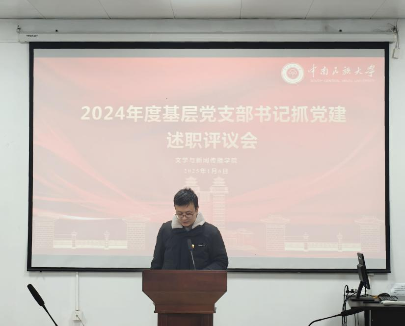 根據學校黨委工作要求,2025年1月6日下午,學院召開2024年度基層黨支部書記抓黨建述職評議會,學校黨建述職評議督導組成員龐建華、謝村,文學與新聞傳播學院“兩委”委員,學院各基層黨支部書記,師生黨員代表參加會議。會議由學院黨委書記謝嵐主持。