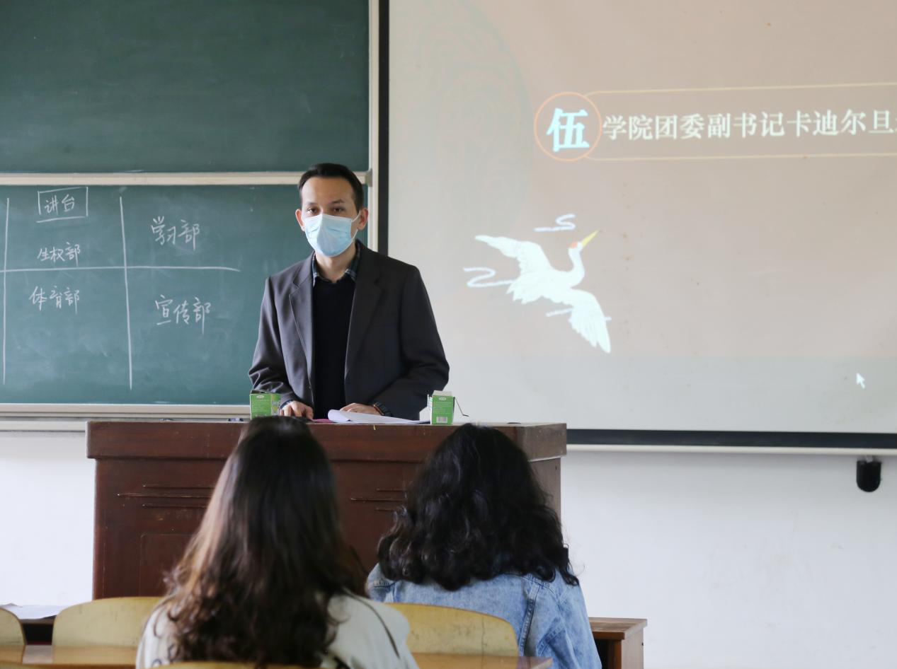 卡迪爾旦老師對新生學生干部寄予了殷切期望。他表示,希望新生班委能增強服務意識、廣泛團結同學,帶領同學自我完善、共同進步,同時肩負責任、直面挑戰、樹立高尚情操、增長能力才干,真正把學生會建設成同學們想得起、找得到、靠得住的學生組織。