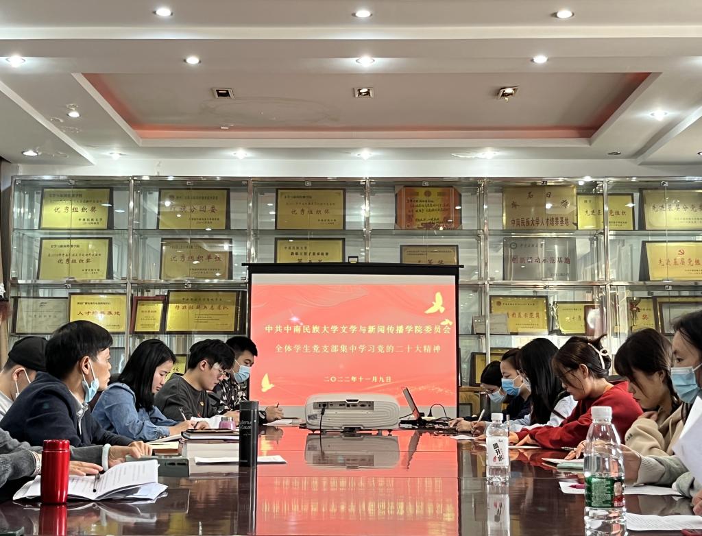 本站訊(通訊員王書豪 攝影王書豪)11月9日上午,文學與新聞傳播學院組織全體學生黨支部書記和黨員代表集中學習黨的二十大精神,專職組織員伍嵐出席會議,黨委副書記張文軍主持會議。