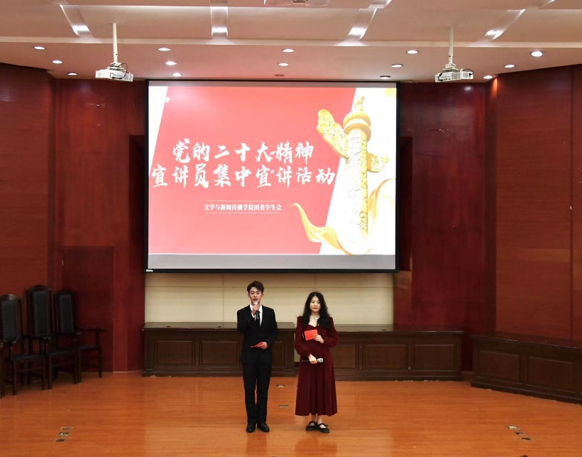 本站訊(通訊員張碩攝影劉馨潞)為深入學習宣傳貫徹黨的二十大精神,2月25日下午2點30分,我院黨的二十大精神宣講員集中宣講活動在模擬法庭順利舉行。我院教學院長陳嘯、黨委副書記張文軍、團委書記龔觀、學工辦主任黃謙以及2022級全體班導師出席本次活動,馬克思主義學院宣講團擔任評委,我院宣講團成員圍繞“凝心聚力謀發(fā)展,砥礪奮進新征程”的主題依次展開宣講。