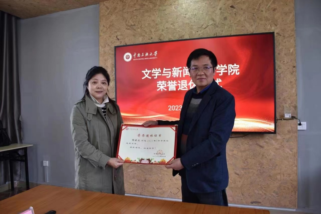 本站訊(通訊員陸遠(yuǎn)琦、張湞芳 攝影陸遠(yuǎn)琦、胡孟玲)為表達(dá)我院對(duì)退休教師教書育人和躬耕科研的崇高敬意,共話師生情、同事情、摯友情,4月7日上午,我院于文一樓119會(huì)議室和天門訪企拓崗現(xiàn)場(chǎng)同步舉辦教職工榮譽(yù)退休儀式,退休教師伍嵐、楊小玲、祝翔參加了在學(xué)院舉行的榮休儀式,學(xué)院院長(zhǎng)陶喜紅、副書記張文軍、工會(huì)主席熊英、教師代表郝永華、鮑建強(qiáng)、陳琳共同參加。當(dāng)天,在天門訪企拓崗的現(xiàn)場(chǎng),陳峻俊副院長(zhǎng)、陳明老師和柳迪善老師、王鈞老師等為退休教師徐曉波舉行了榮休儀式。 陶喜紅院長(zhǎng)就本次儀式發(fā)表了包含以下三層含義的講話,一是向在座的三位和因公務(wù)未到場(chǎng)的三位退休教師表示誠(chéng)摯的敬意。他表示,回首過(guò)去幾十年的發(fā)展歷程,大家攜手并進(jìn)、共同奮斗,書寫了一個(gè)個(gè)育人的故事,唱出了一首首育人的贊歌。二是祝愿各位退休教師在新的跑道上跑出“四個(gè)好”,體驗(yàn)多彩人生。三是聆聽?zhēng)熒适?,傳承寶貴精神。陶喜紅院長(zhǎng)細(xì)數(shù)每個(gè)退休教師的特點(diǎn):伍嵐老師全心全意做好學(xué)生工作;楊小玲老師從不抱怨,優(yōu)雅從容;祝翔老師兢兢業(yè)業(yè)、關(guān)愛學(xué)生……希望各位老師?;亍凹摇笨纯矗^續(xù)為我院發(fā)展建言獻(xiàn)策。 退休教師暢談感想,大家共同追憶了在學(xué)院工作和生活的點(diǎn)點(diǎn)滴滴。伍嵐老師感念文傳學(xué)院的培育之恩,得知要離開時(shí),她做了很久的心理建設(shè),并親筆寫下《寄語(yǔ)人生下半場(chǎng)》:“讓我大膽暢想一下,生活的底色從此是無(wú)拘無(wú)束,無(wú)憂無(wú)慮;生活的基調(diào)從此是閑適清歡,怡然自得……”寬慰自己;祝翔老師感慨我院良好的學(xué)術(shù)風(fēng)氣,談道:“在民大的這二十年,我的幸福指數(shù)非常高。”楊小玲老師也將自己的授課經(jīng)歷與師生故事悉數(shù)道來(lái)。在儀式尾聲,陶喜紅院長(zhǎng)向三位退休教師頒發(fā)榮譽(yù)證書和贈(zèng)予鮮花,并合影留念。
