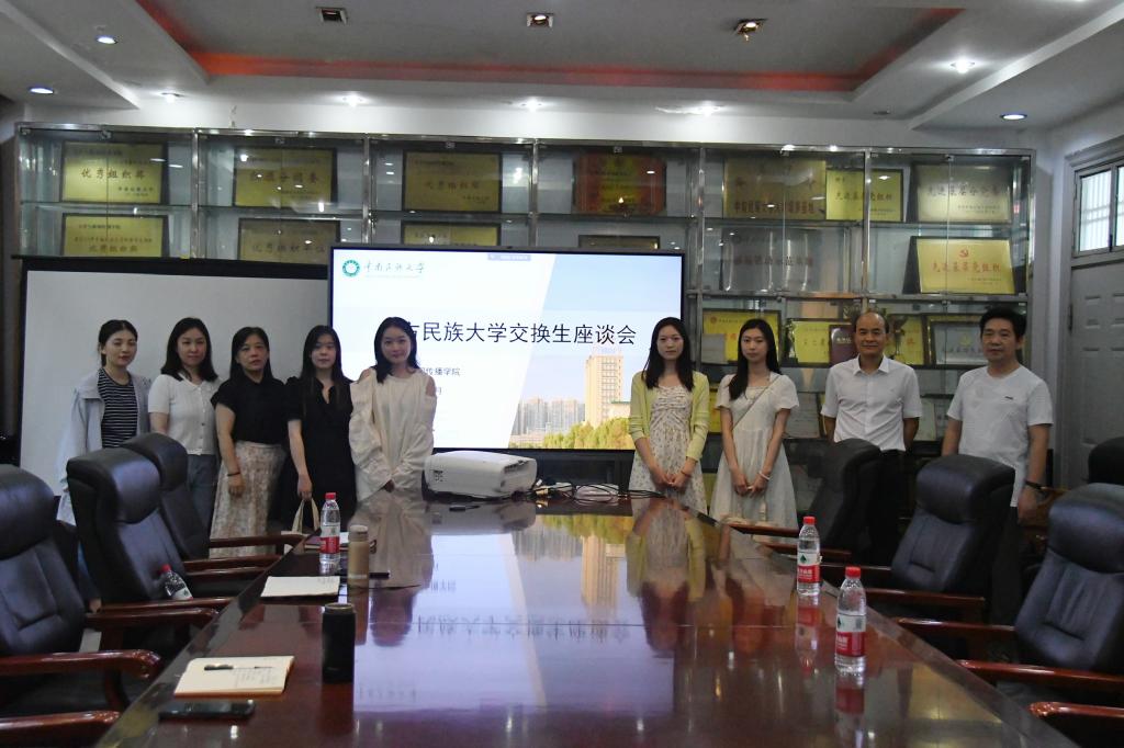 本站訊(通訊員柯萍)6月14日下午,我院在文一樓203會議室召開了交換生座談會。我院院長陶喜紅、副院長陳嘯、黨政辦主任陳琳、學工辦主任黃謙與在我校已交換一年的北方民族大學的4名同學出席了會議。