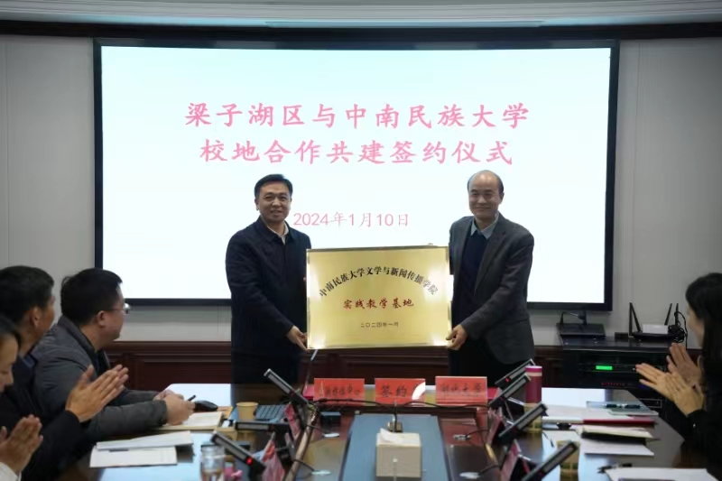 簽約儀式上,陶喜紅院長為梁子湖區授牌“實踐教學基地”,表示將以此次合作為契機,實現互學互鑒、互利共贏發展目標,全力打造校地共建示范樣板。梁子湖區委常委、宣傳部長胡映東表示,本次校地合作將為梁子湖人才培養和融媒宣傳注入新的活力,助力梁子湖區高質量發展。郝永華教授、田園子副教授獲聘“梁子湖區文化宣傳專家顧問”。
