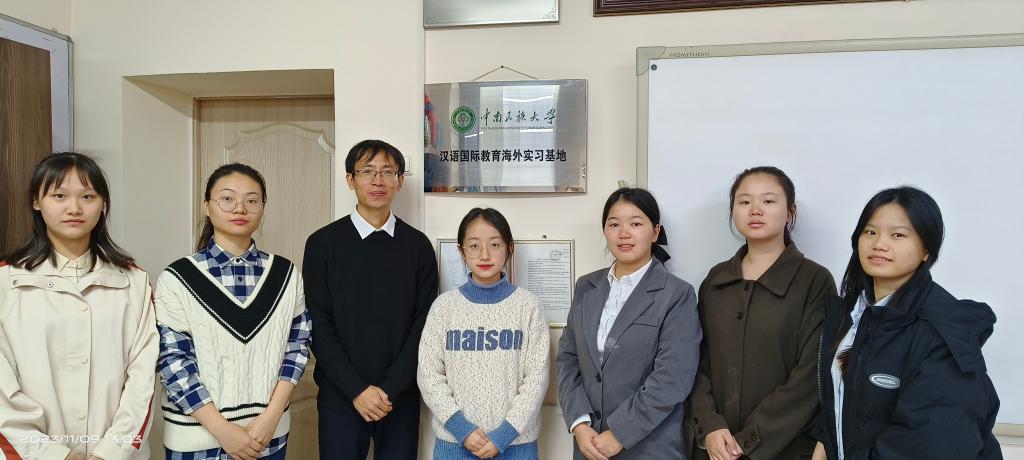 帶隊老師高逢亮介紹,學校十分注重國際交流合作,師生積極傳播中華文化,在“一帶一路”背景下講好中國故事。國際哈中語言學院是哈薩克斯坦國家教育部批準的、以培養漢語專長人才為特色的職業學院,是我校于2019年掛牌的首個海外國際中文教育實習基地,這也是國家民委直屬院校中第一個海外實習基地。四年來,學院不斷派出師生開展教學與實習工作,并取得了明顯成效。