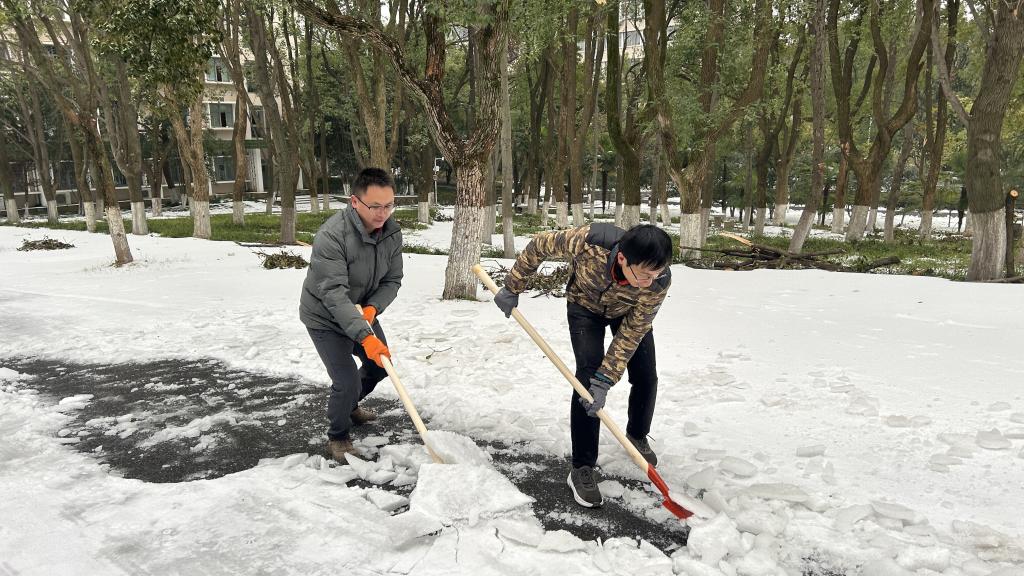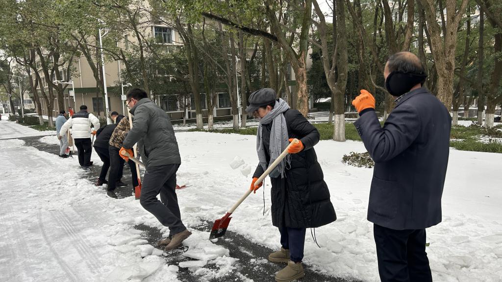 (通訊員 龔觀 田曼陽)2月21日晚至22日,武漢再度遭受低溫雨雪冰凍天氣。為切實做好惡劣天氣應(yīng)急處置工作,校黨委高度重視,提前部署,學(xué)院黨委積極響應(yīng),組織在校師生黨員,對文一樓前主干道進行鏟冰除雪路面清掃等應(yīng)急處置工作,全力保障春季學(xué)期開學(xué)返校工作順利進行。