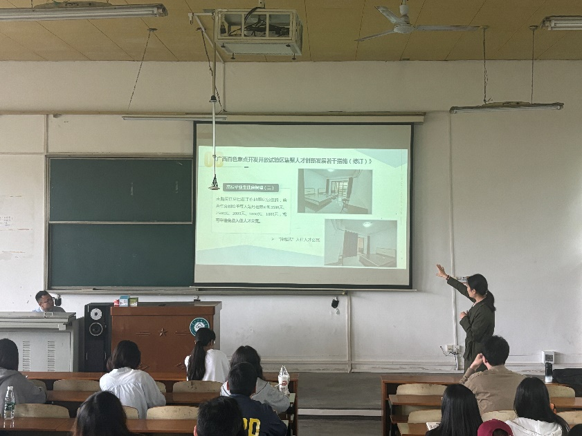 本站訊(通訊員:袁萌梓 拍攝:張湞芳)4月17日上午,廣西百色市委組織部來我院宣講人才引進相關政策,會議由中共百色市委員會組織部人才工作科科長、百色市人才儲備發展中心主任楊曉毅主講,學院部分教師、在讀博士生、碩士生及本科生參加會議。