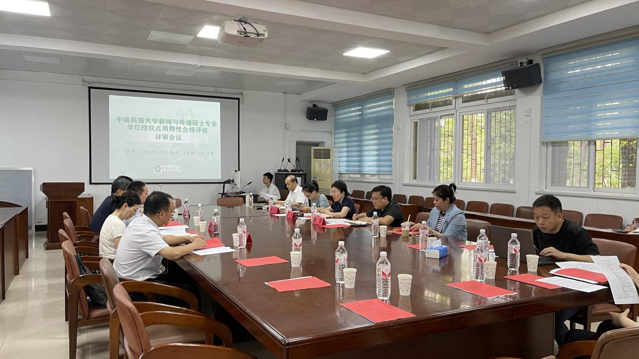 (通訊員:黃梓航,攝影:王芳)5月20日下午,中南民族大學新聞與傳播碩士專業學位授權點周期性合格評估評審會議在1號樓119會議室順利舉行。評審專家組、研究生院負責人、文學與新聞傳播學院領導班子成員、學科帶頭人、學位點建設小組成員參加會議。經過評議,評審專家組認為文學與新聞傳播學院新聞與傳播碩士專業學位授權點建設情況評估等級為“合格”。