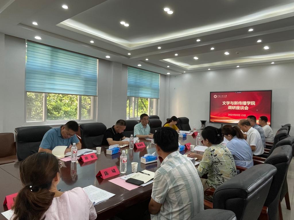 8月13日上午,校長(zhǎng)劉義一行到文學(xué)與新聞傳播學(xué)院調(diào)研指導(dǎo)工作。校黨政辦主任陳強(qiáng)勝、人事處處長(zhǎng)江瑩、研究生院副院長(zhǎng)胡鵬、文學(xué)與新聞傳播學(xué)院領(lǐng)導(dǎo)班子成員參加調(diào)研座談會(huì),座談會(huì)由學(xué)院黨委書記謝嵐主持。