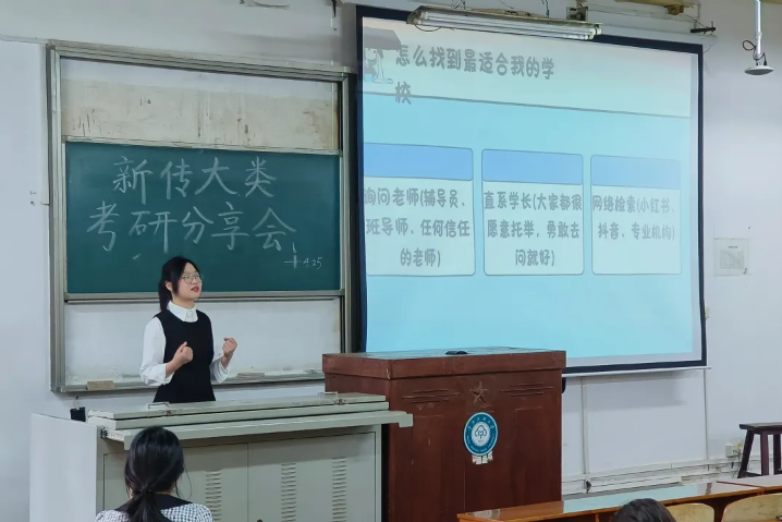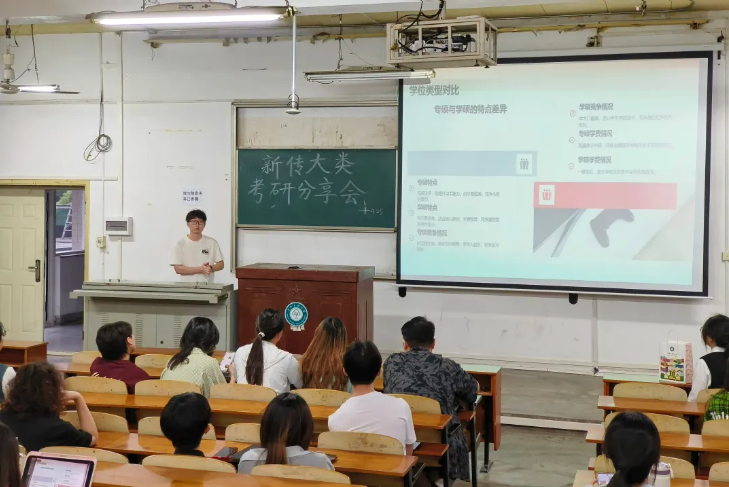 本站訊(通訊員楊哲亦 王怡琳 攝影甄妍冰)為積極響應新時代對高素質專業人才的需求,助力文傳學子明晰考研方向、優化備考策略,以科學的方法和堅定的信念迎接考研。4月26日晚,學院極星導生團隊于1號教學樓201教室,成功舉辦“星光引路,‘研’途筑夢”新傳大類考研經驗分享會。活動特邀2021級兩位優秀學生代表作為嘉賓,分享他們的考研心得。活動由2022級輔導員王冰瀅老師主持。