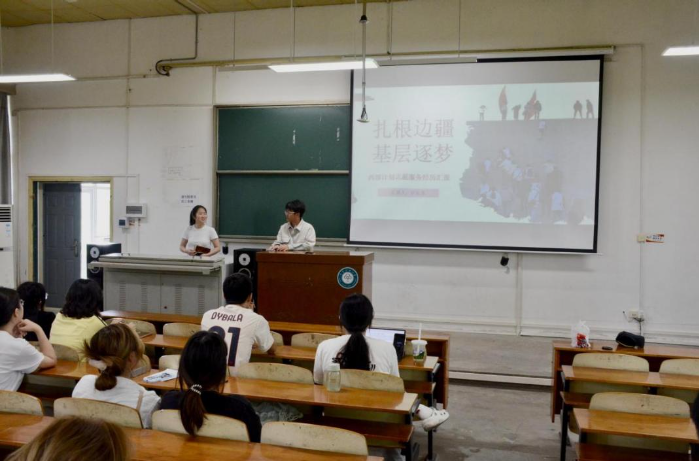 本站訊(通訊員甄妍冰 攝影徐躍)為深入貫徹落實《關于進一步引導和鼓勵高校畢業生到基層工作的意見》精神,積極響應新時代青年投身鄉村振興、服務國家發展戰略的號召,5月26日下午,學院極星導生團隊在文一樓301教室舉辦了“青春獻西部,使命勇擔當”西部計劃經驗分享會。本次活動特邀2019級優秀畢業生、現西部計劃志愿者趙家圣返校交流,以其親身經歷為在校學子傳遞心聲,分享寶貴經驗。活動由2022級輔導員王冰瀅老師主持。