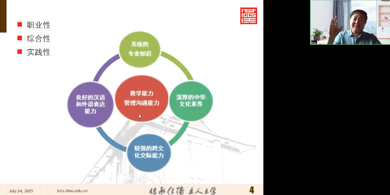 7月24日上午,我院邀請上海師范大學對外漢語學院劉春光副教授進行了題為“以賽促教,以賽促學”的線上培訓。培訓會由我院副院長熊英主持,部分國際中文教育專業教師及四十余名碩士研究生參與了培訓學習。