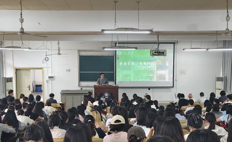 (通訊員 呂洪怡 張巍巍 攝影 白裙)6月12日上午,文學(xué)與新聞傳播學(xué)院在1號(hào)樓201教室成功舉辦“研途有你·未來同行”研究生招生宣講會(huì)。本次活動(dòng)旨在宣傳學(xué)院研究生招生、培養(yǎng)工作,幫助2023級(jí)中文類專業(yè)學(xué)生把握考研動(dòng)態(tài),科學(xué)規(guī)劃升學(xué)路徑。學(xué)院院長李長中、副院長熊英、教師楊彬、邵大為、高逢亮、夏耕出席會(huì)議,輔導(dǎo)員韓婷主持,2023級(jí)中文類本科生全體學(xué)生參加。