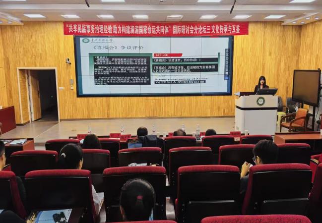 本站訊(通訊員:周依琳 攝影:周依琳)10月15日下午,“共享民族事務治理經驗 助力構建瀾湄國家命運共同體”國際研討會分論壇三“文化傳承與互鑒”在文一樓101會議室舉行,本次分論壇由文學與新聞傳播學語和外國語學院兩院聯合承辦。論壇上半場由文學與新聞傳播學院碩士生導師杜穎卉主持,文學與新聞傳播學院副院長、博士生導師陳峻俊教授擔任評議嘉賓。論壇下半場由外國語學院副院長、碩士生導師李明副教授主持,外國語學院副院長、碩士生導師李敏杰教授擔任點評嘉賓。