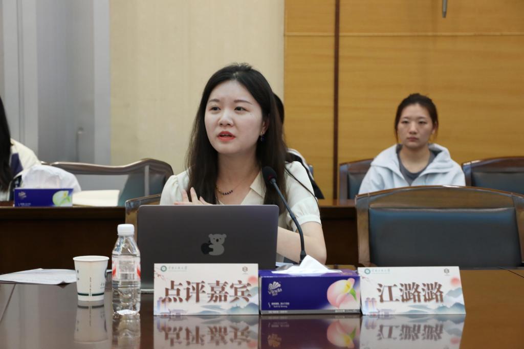 在研討環節,嘉賓老師與同學們就論文的邏輯內容豐富度、調研工作的深入度等問題展開探討。何國梅老師和江潞潞老師一致認為,這些論文都具有鮮明的創新點,可以從不同的角度對內容進行論證,具有較強的學術創新性。論文還提出一些讓人眼前一亮的觀點。