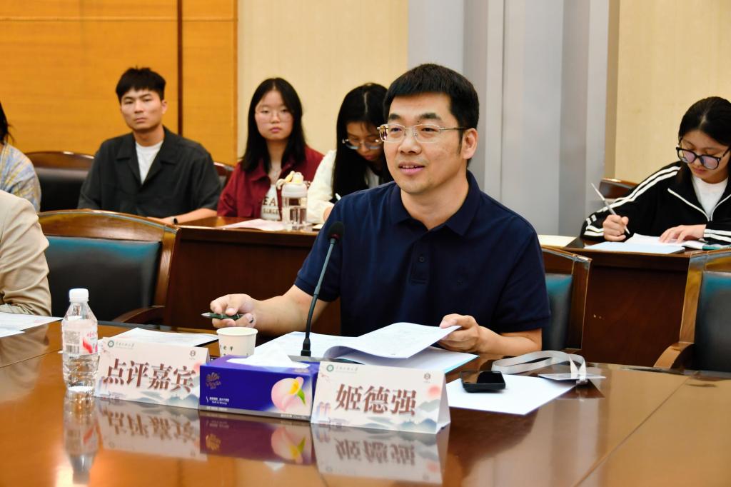 在研討環節,姬德強教授和劉金波老師認為四篇論文都是質量較高的學術作品,優點突出,從文獻綜述到數據論證,每一步都環環相扣,展現出作者扎實的寫作功底。同時也提出了一些專業的建議,認為作者在研究中華文化的跨媒介傳播時,要豐富文章的內容、細節,提升文章的充實度,并且表現出中華文化的特殊性。