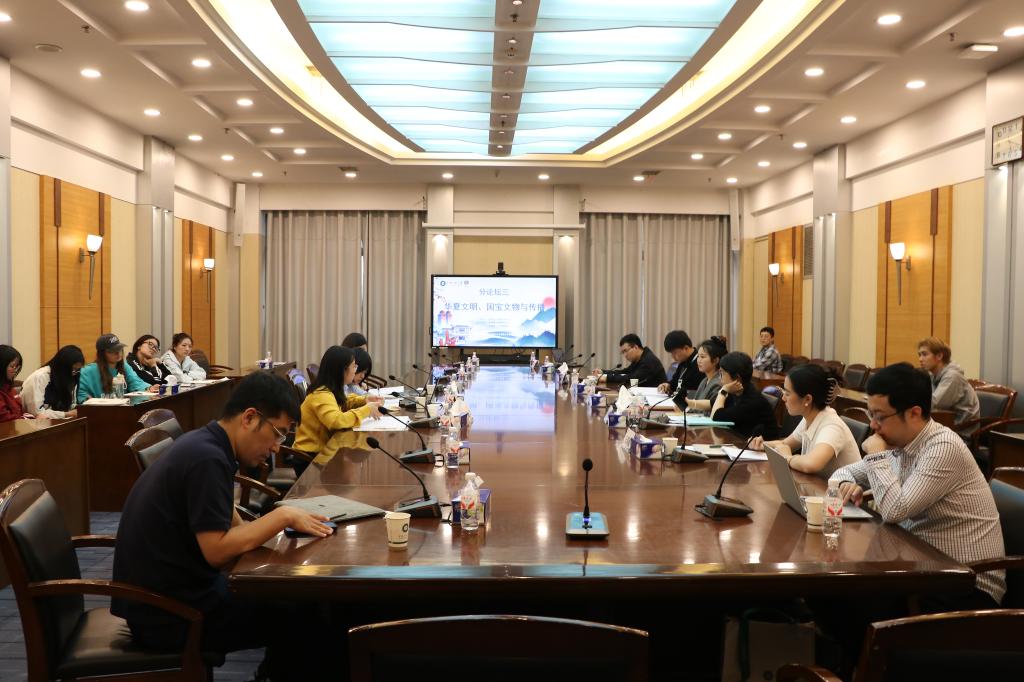 本場論壇聚焦我國國寶文物的對外傳播,由湖北省社會科學院老師、浙江大學城市學院老師、中國傳媒大學研究生、西安美術學院研究生和南京藝術學院研究生輪流發言。