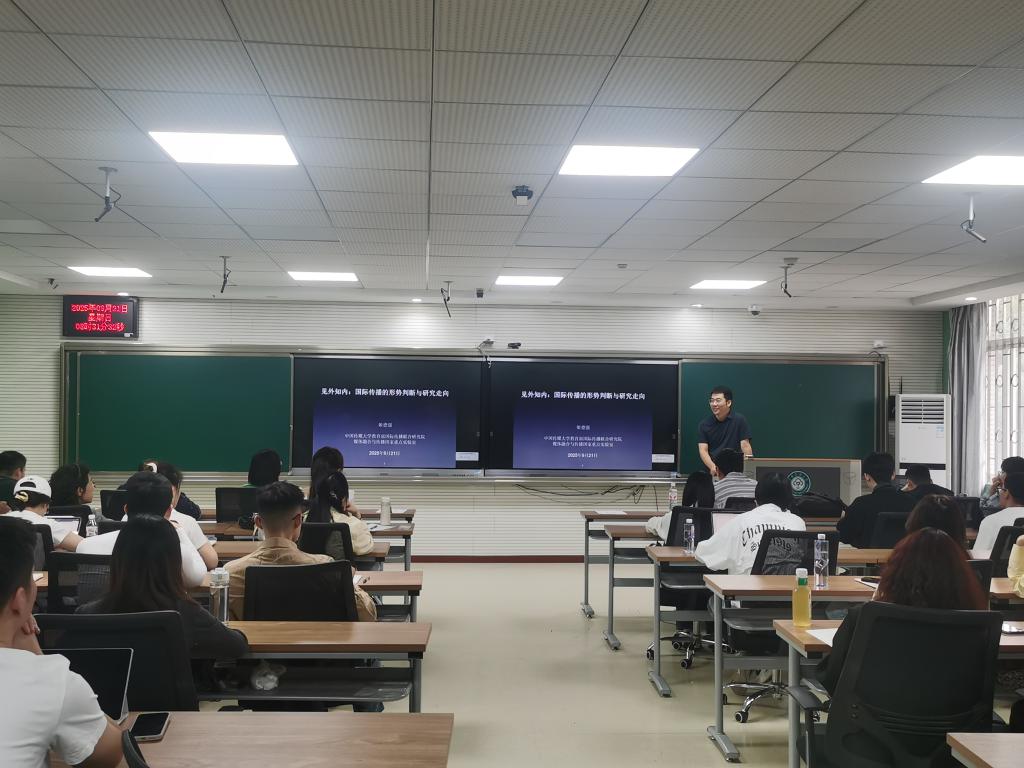 責編:陳琳 審核:謝嵐 上傳:陳琳 本站訊(通訊員:李妍 攝影:李妍)9月21日上午,學院邀請中國傳媒大學教育部國際傳播聯合研究院副院長、媒體融合與傳播國家重點實驗室研究員姬德強教授在10號教學樓227教室做《見外知內:國際傳播的形勢判斷與研究走向》的學術講座。講座由黃駿副教授主持,學院相關專業教師及部分研究生參加。