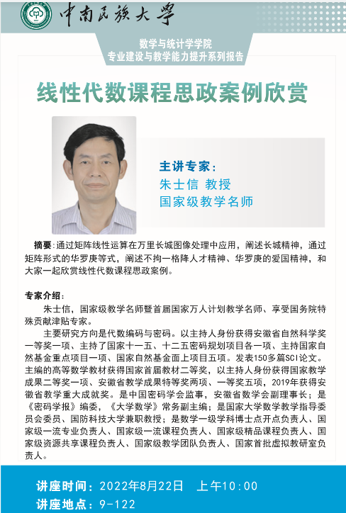 【學術講座】8月22日合肥工業大學朱士信教授學術講座通知