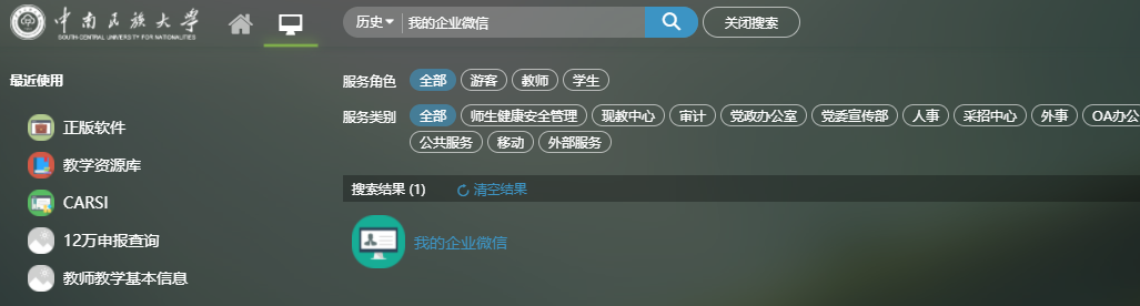 解決辦法:先退出當前企業,步驟為設置-我的企業-中南民族大學-退出企業,然后去新賬號的信息門戶搜“我的企業微信”,看頁面上手機那一欄兩個手機號是否一致,一致用該手機號登錄,兩個手機號不一致或只有一個手機號按上面的提示操作。
