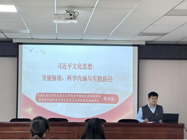在理論學習環節,黃政馀作了題為《習近平文化思想:發展脈絡、學科內涵與實踐路徑》的宣講報告。他以分析《新時代人文經濟學》智庫報告發布的重大意義作為引入,從舉旗定向、培根鑄魂、放眼未來三大維度回顧以習近平同志為核心的黨中央引領宣傳思想文化事業的發展紀實,對習近平文化思想的發展脈絡與科學內涵進行詳細講解。此外,他還著眼新形勢、新任務,就做好社區黨組織的宣傳思想文化工作提出了建議。
