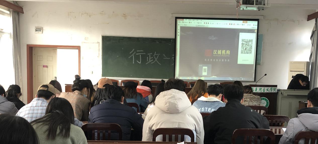 2020年12月28日畢業(yè)生考研結束后,我院邀請校友企業(yè)漢閣機構來我院為17級畢業(yè)生開展招聘會。