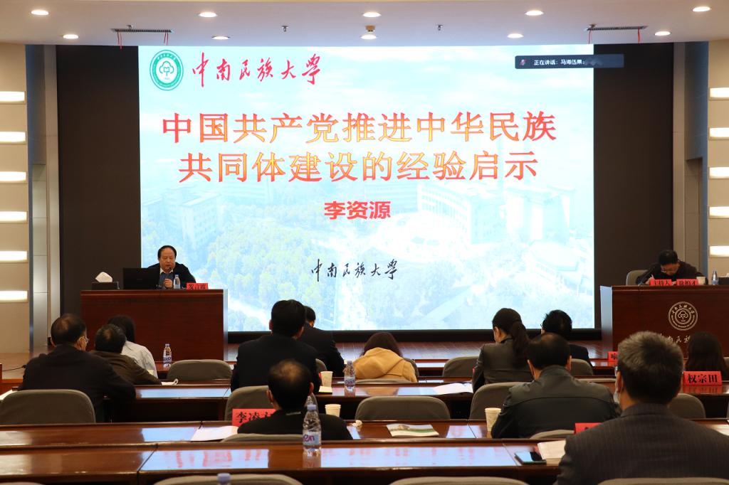 中南民族大學馬克思主義學院李資源教授圍繞“中國共產黨推動中華民族共同體建設的經驗啟示”這一主題,認為當前中華民族共同體建設要正確把握好共同性與差異性、中華民族共同體意識和各民族意識、中華文化和各民族文化、物質與精神這四對關系,堅定不移走中國特色解決民族問題的正確道路。