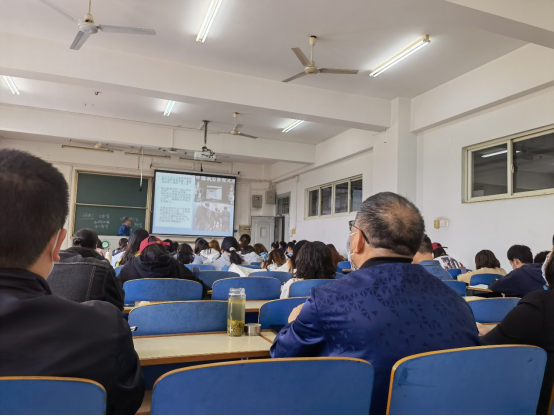 宋發(fā)軍一行首先在415教室認真聽完了劉啟春教授主講的《中國共產黨思想政治教育史》課。課堂上,劉啟春教授圍繞抗日戰(zhàn)爭時期“黨員干部思想政治教育的方法、內容和特點及經驗”問題展開,教學思路清晰、重點突出,課堂井然有序,學生全神貫注、專心聽講、自覺做筆記,不時積極互動。課后,宋發(fā)軍副校長與劉啟春教授進行了親切交談,從教學內容、教學設計、教學方式及教學效果等方面給予了點評,充分肯定了劉啟春教授準備充分,學術前沿問題把握準確,學生聽課認真,積極思考,教學效果好。劉啟春教授表示,感謝校領導一行對課堂教學效果的肯定及指導,今后將繼續(xù)加強對本科課堂教學的重視和投入,不斷完善教學內容和方法,提高教學效果。