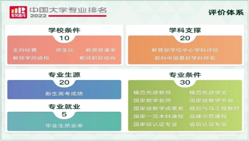 “軟科中國大學專業排名”通過學校—學科—專業三個層次的評價匯總形成對專業的綜合評價。排名指標體系設置學校條件、學科支撐、專業生源、專業就業、專業條件5個指標類別,共19項測量指標,得到社會各界的廣泛認可。(作者:金瑤 編輯:金瑤 審核:魏大江 上傳:金瑤)