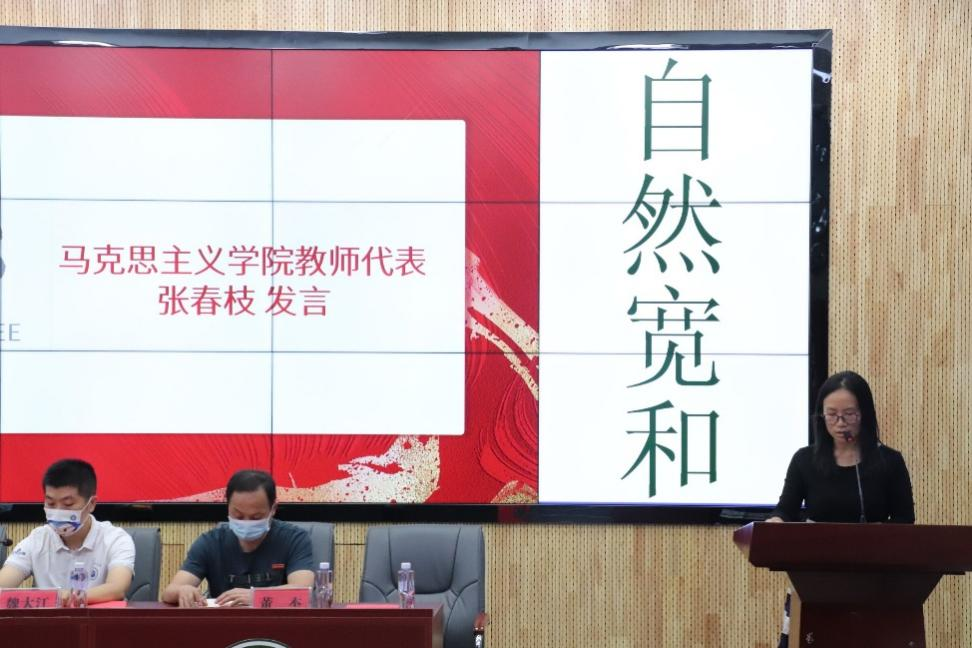 教師代表張春枝就怎樣踐行初心使命的發問開篇,希望新生同學要富有足夠的力量、勇氣、智慧和能力,在自己所處的時代條件下規劃人生、創造歷史,在全面推進社會主義現代化建設事業的征途中成為理想遠大、信念堅定的新一代,品德高尚、意志頑強的新一代,視野開闊、知識豐富的新一代,開拓進取、艱苦創業的新一代,共同期待同學們大有所為。