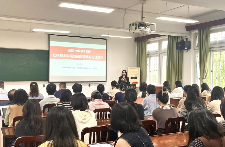 10月17日上午,我院舉辦領航講堂第65講。中國地質大學(武漢)馬克思主義學院韓美群教授應邀作了題為“價值引領與學術創新——社科基金申報的選題策略與論證藝術”的專題報告,我院部分教師及2024、2025級碩士研究生現場聆聽報告,報告由副院長瞿曉琳主持。