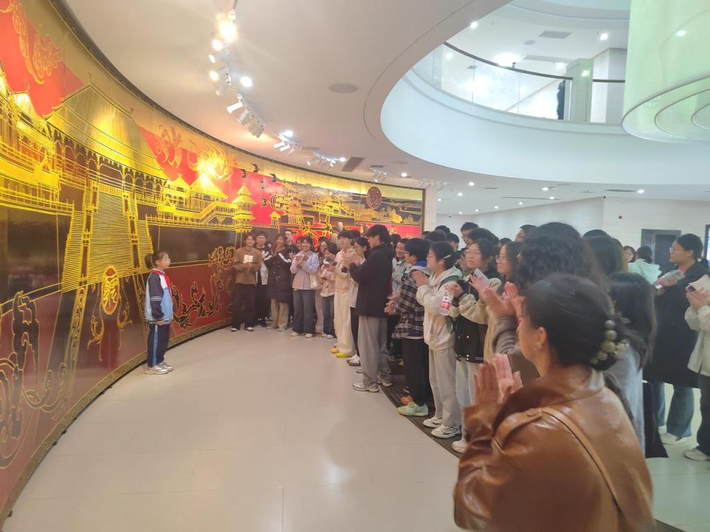 活動中,師生一同走進云夢縣博物館,通過觀賞館藏文物與歷史遺存,近距離感知云夢秦簡的法治智慧與楚文化的藝術魅力。結合易新濤教授的現場教學,師生們真切感知了習近平總書記的文化情緣,更加感悟了“文化自信是更基礎、更廣泛、更深厚的自信”的深刻內涵。在館內紅領巾小學生講解員的現場講解中,師生們從秦簡的律令條文和家書里,深刻理解了中華優秀傳統文化的源遠流長。