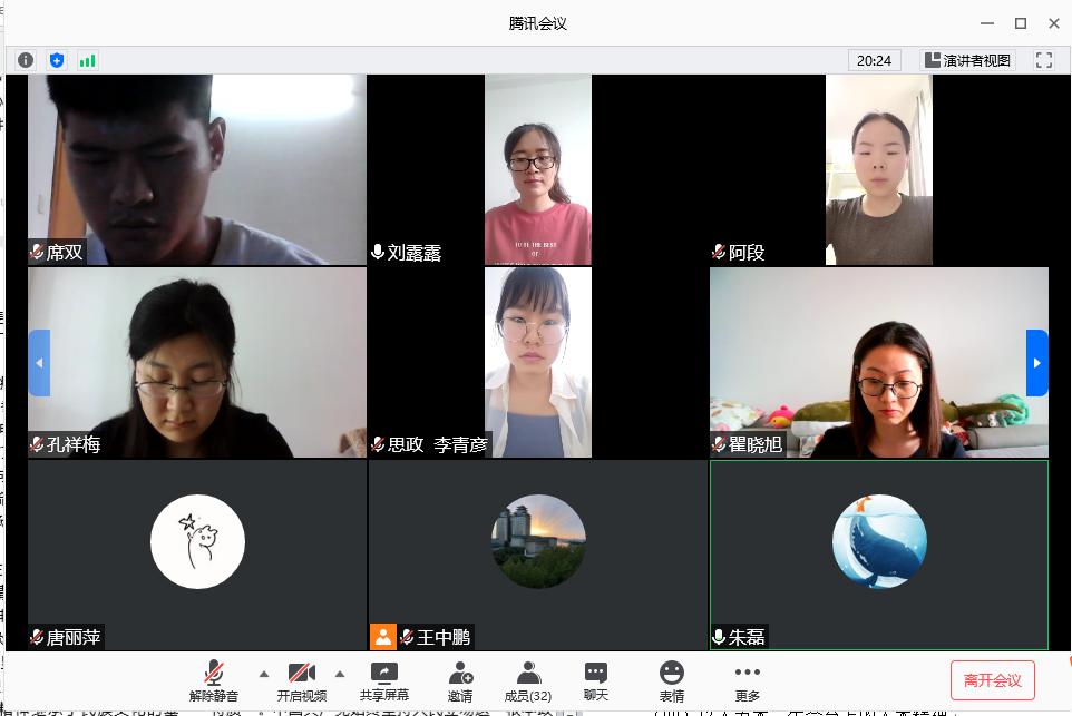 20206月20日午,思政黨支部創新形式,堅持“三個到位”,騰訊會議平臺召開支部大會,通過了同意劉露露席雙孔祥梅段蒙女李青彥瞿曉旭6名預備黨員同志按期轉為正式黨員的決議,并在線上開展入黨宣誓儀式支部教師黨員、學生黨員參加會議